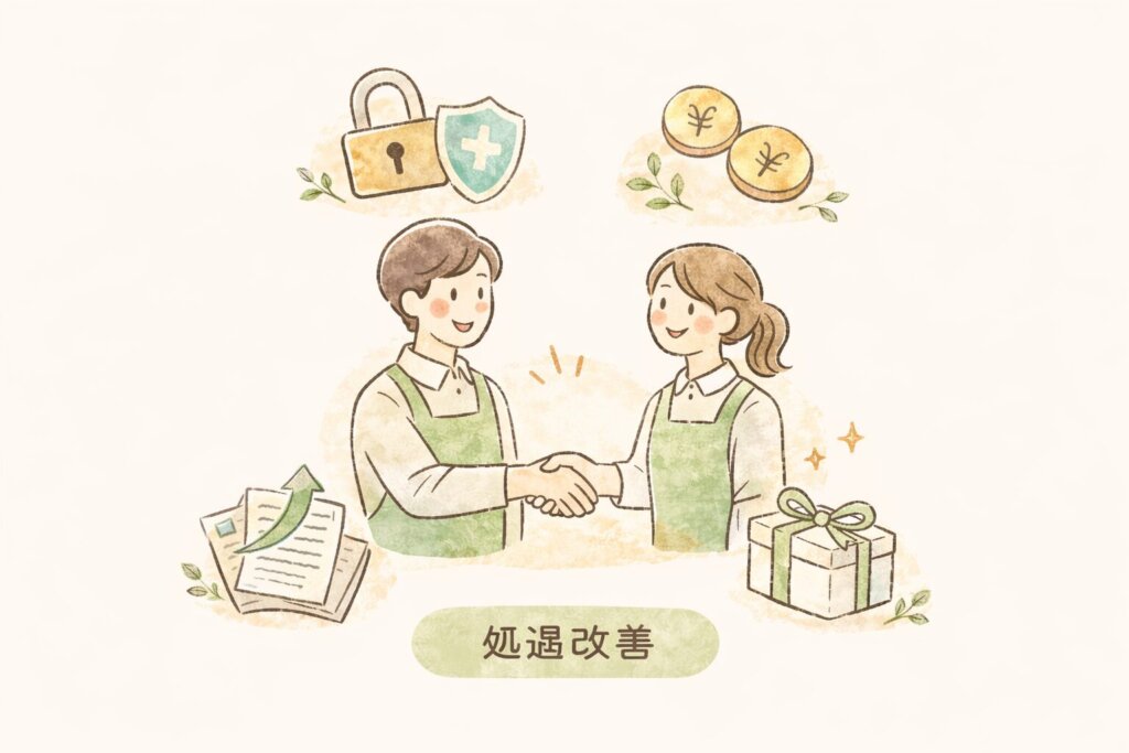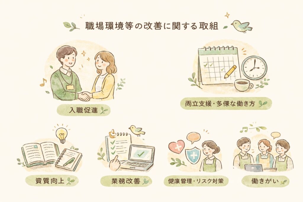 当事業所では、職員の処遇改善および働きやすい職場環境の整備に取り組んでいます。